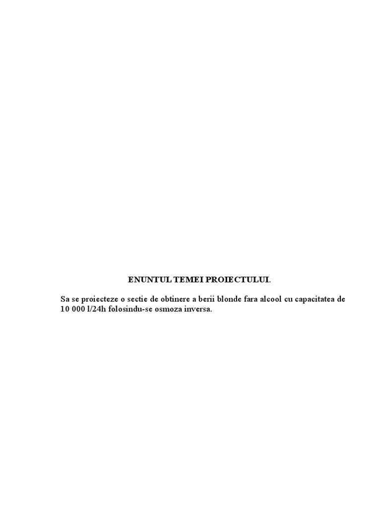 Sa se proiecteze o sectie de obtinere a berii blonde fara alcool cu capacitatea de