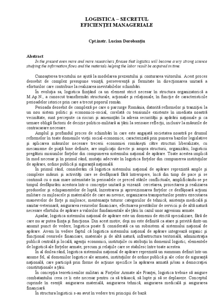 forme adecvate de pregătire a cadrelor de logistică. Acestea trebuie să posede, ca fond comun de