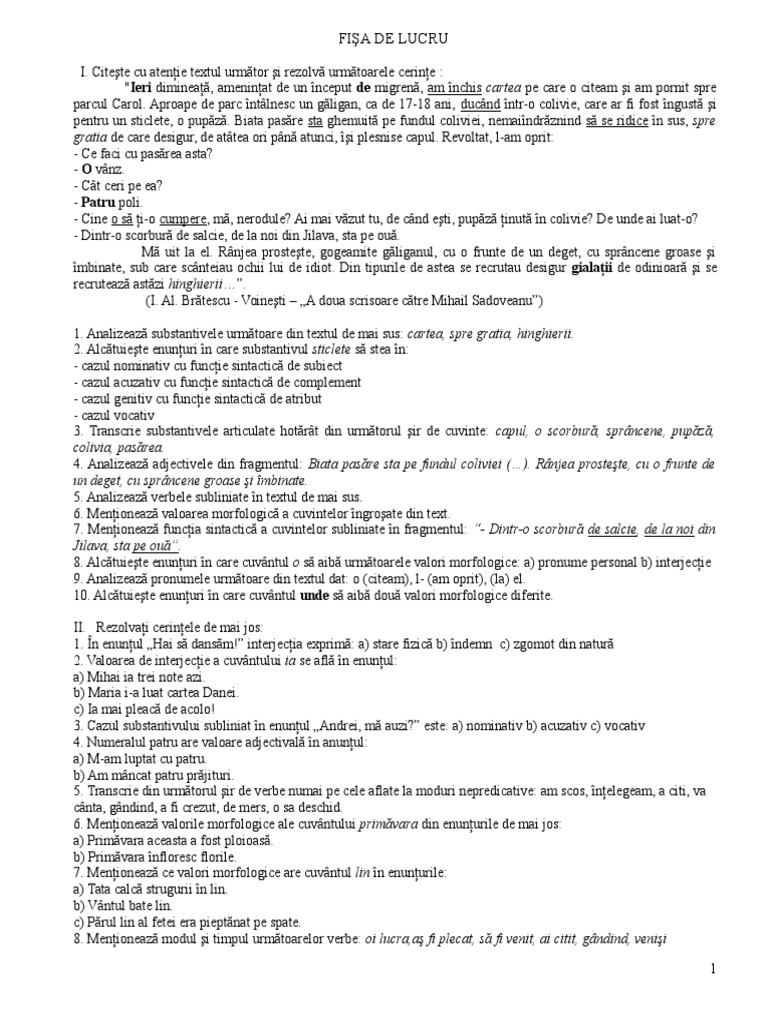 I. Citete cu atenie textul urmtor i rezolv urmtoarele cerine :