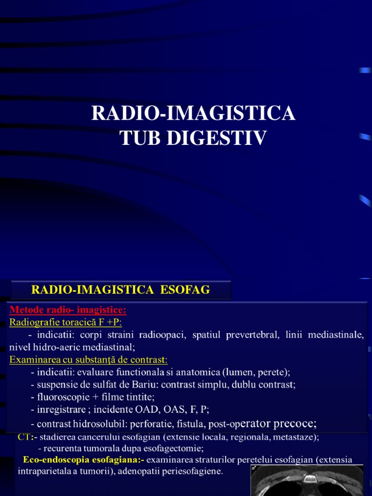 - Ex. baritat: esofag, pozitia cardiei, tipul