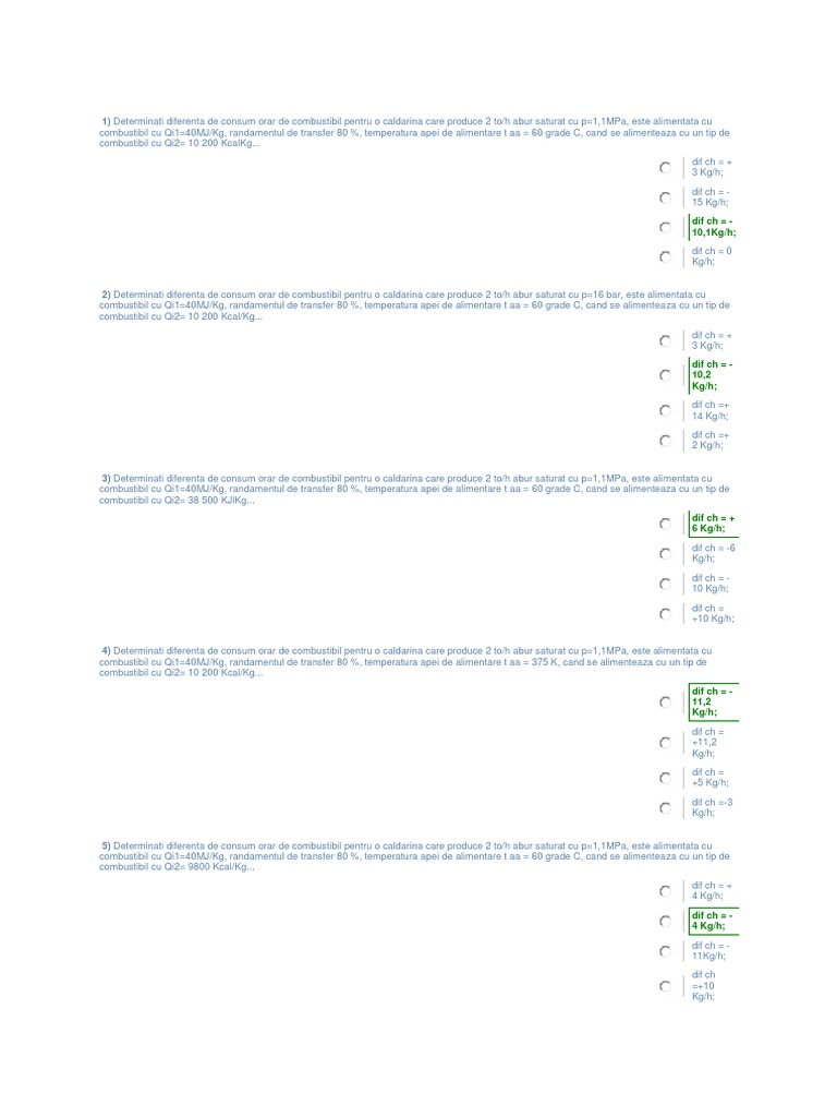 5) Determinati diferenta de consum orar de combustibil pentru o caldarina care produce 2 to/h abur saturat cu p=1,1MPa, este alimentata cu