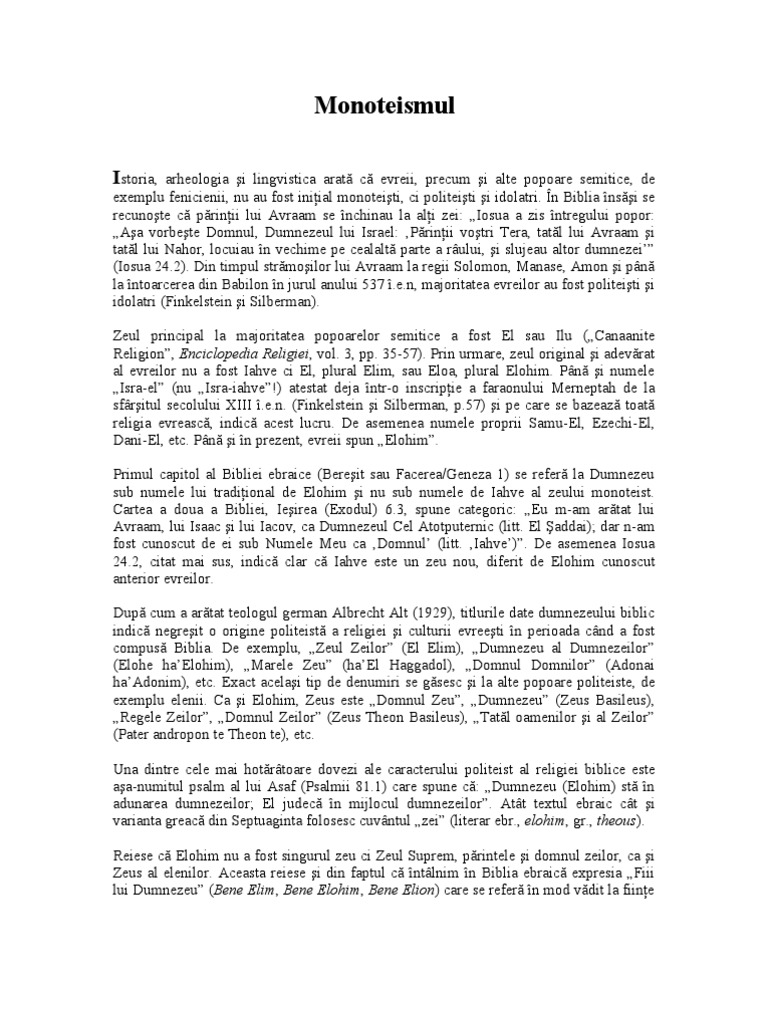 antichităţii greco-romane. Numim această formă ‚monoteism inclusiv’ .... Întâlnim cea