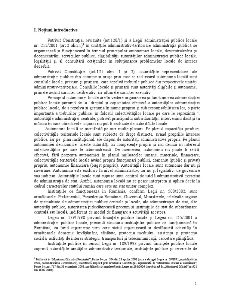 Legea nr. 189/1998 privind finanţele publice locale şi Legea nr. 215/2001 a