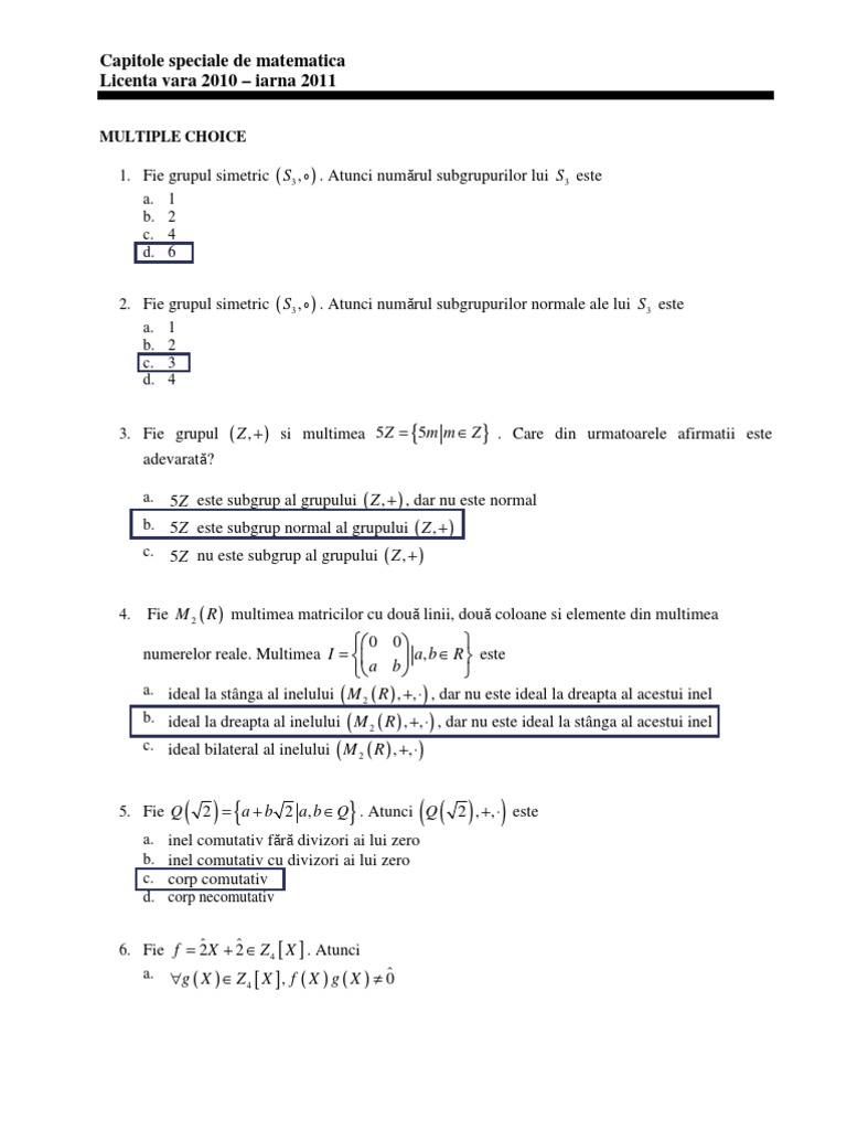 3. Fie grupul ( Z , +) si multimea 5Z = {5m m ∈ Z } . Care din urmatoarele afirmatii este