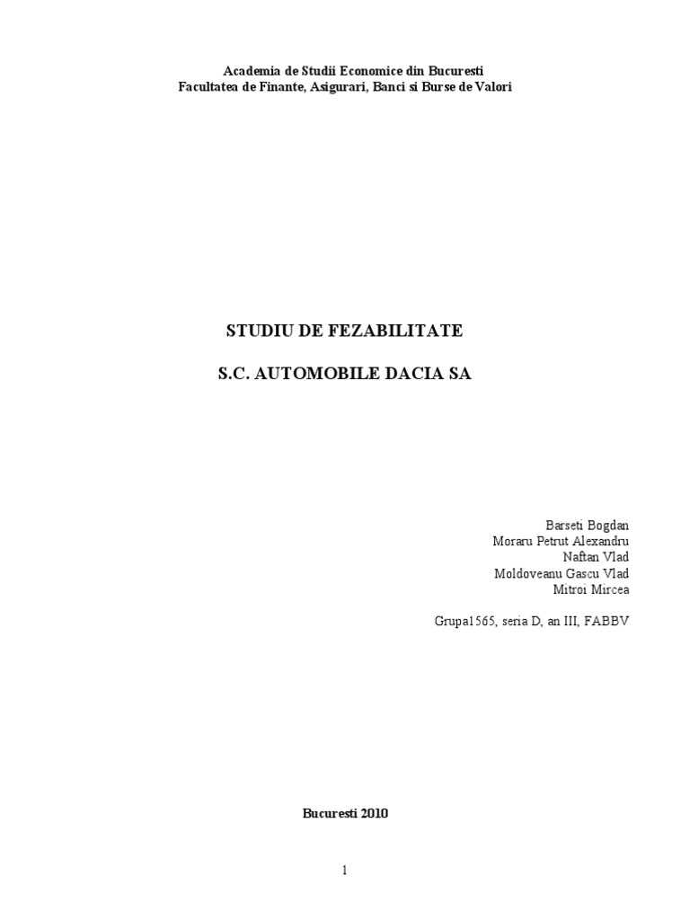 Lucrarea reprezinta o analiza economico-financiara a AUTOMOBILE DACIA SA pe baza