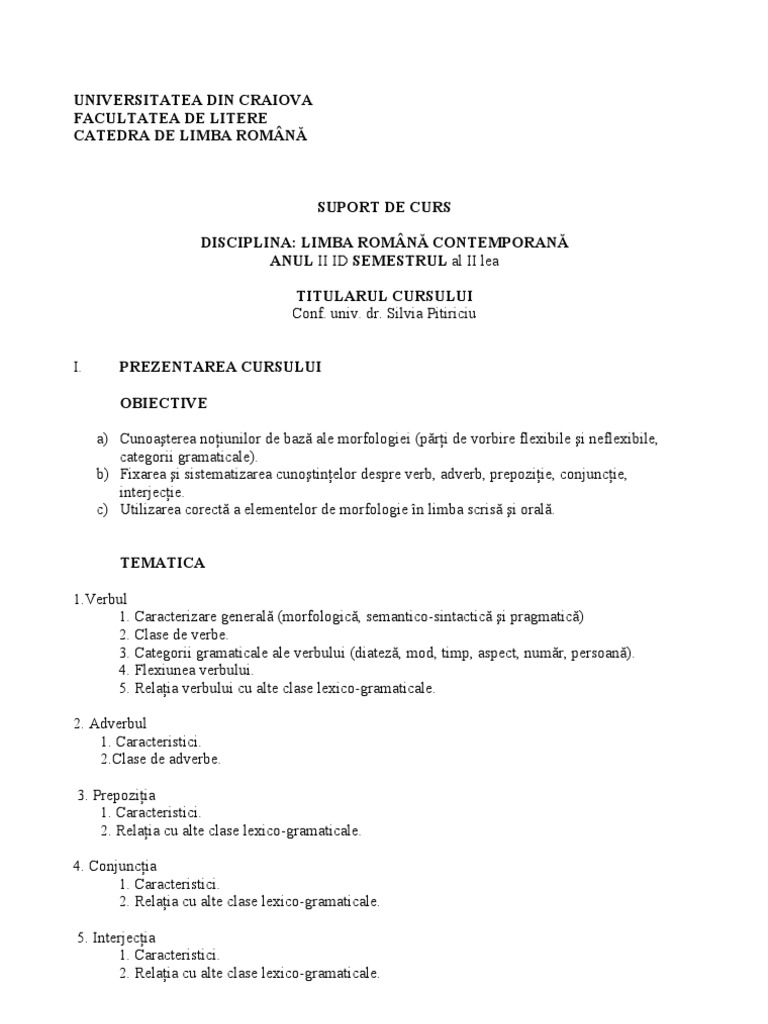 Brâncuş, Grigore, Limba română contemporană. Morfologia verbului, Universitatea din