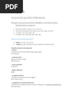 ehe; entuziasm - bravo, ura; ameninţare - alei, alelei, aoleu, vai; au valoare fatică: alo,
