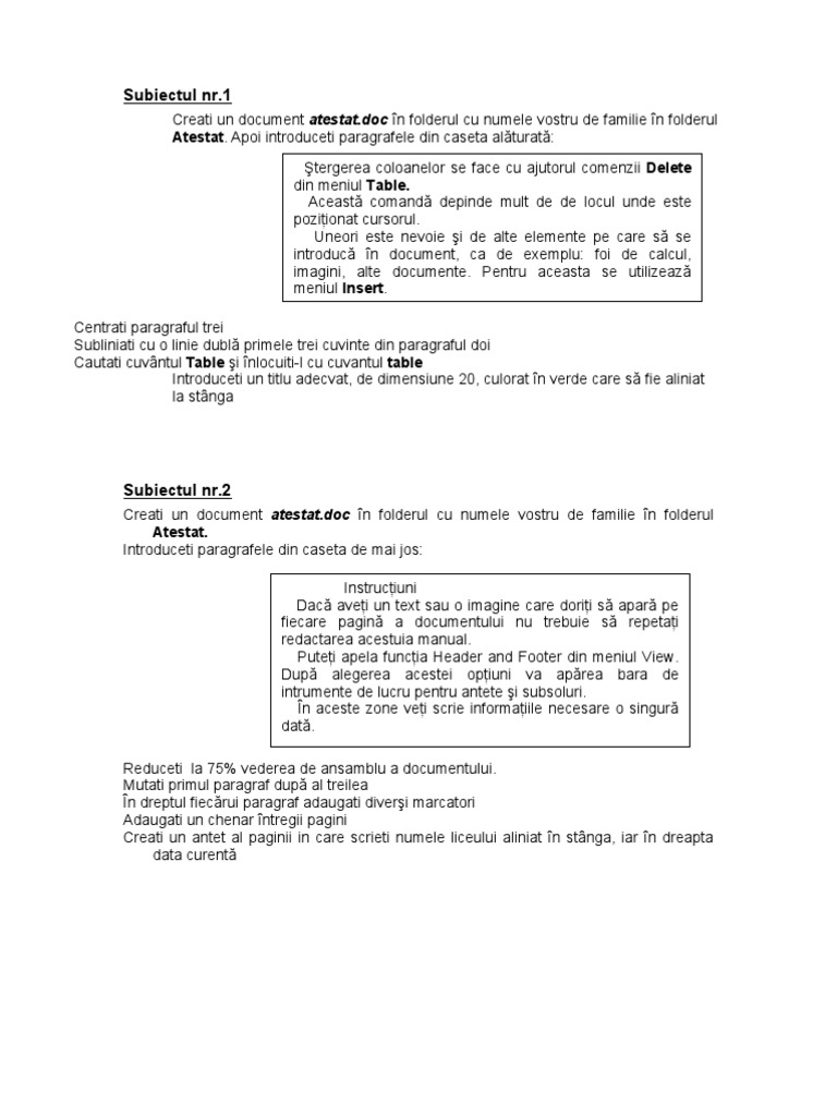 Subiecte Atestat Word