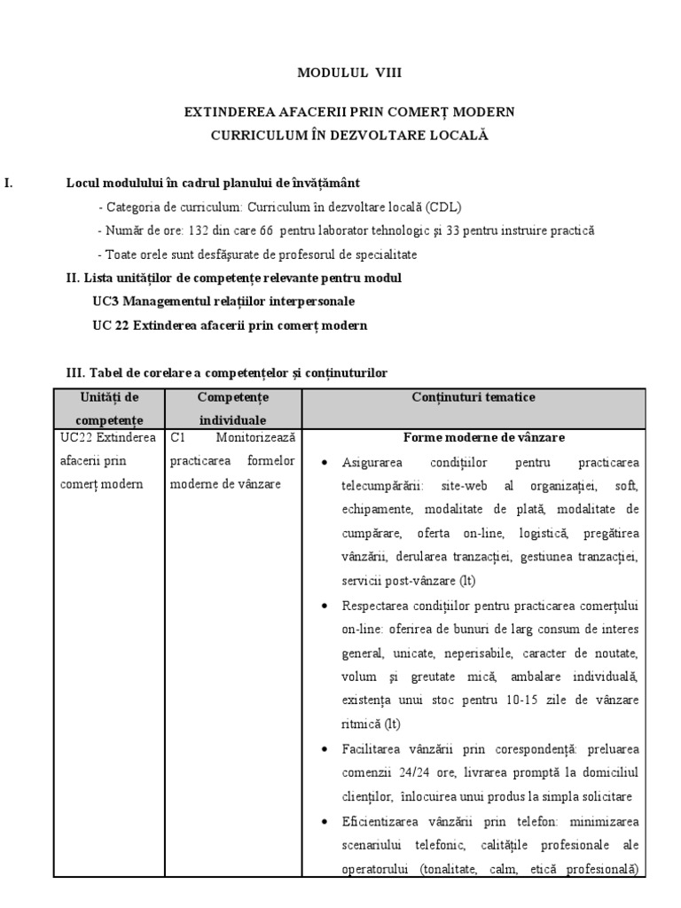 Conţinuturile modulului „ Extinderea afacerii prin comerţ modern” vor fi efectuate de către
