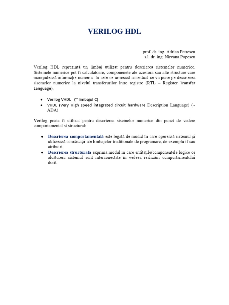 Verilog poate fi utilizat pentru descrierea sisemelor numerice din punct de vedere