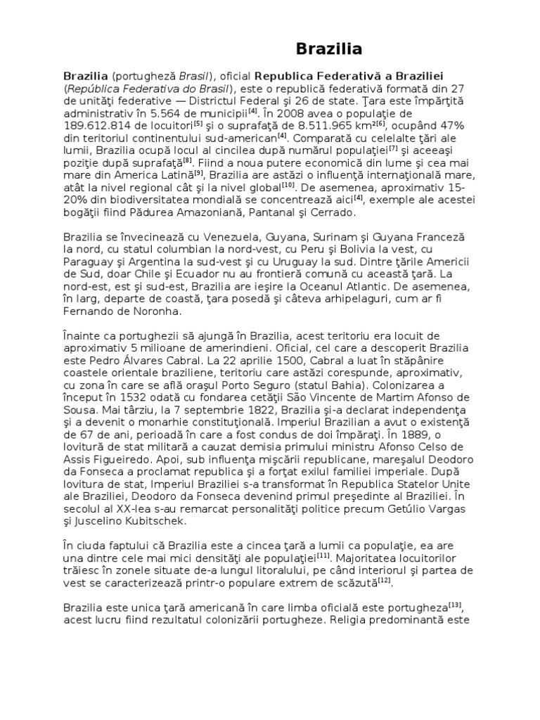 Brazilia (portugheză Brasil), oficial Republica Federativă a Braziliei
