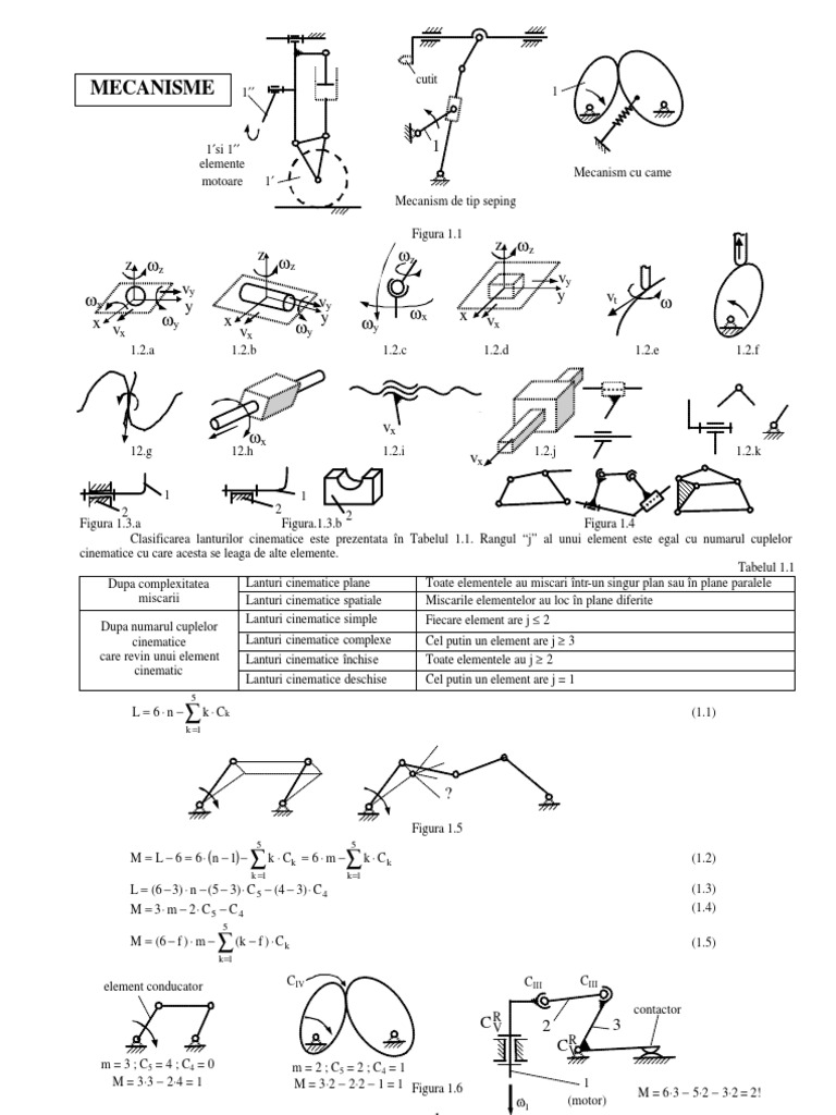 Clasificarea lanturilor cinematice este prezentata în Tabelul 1.1. Rangul “j” al unui element este egal cu numarul cuplelor