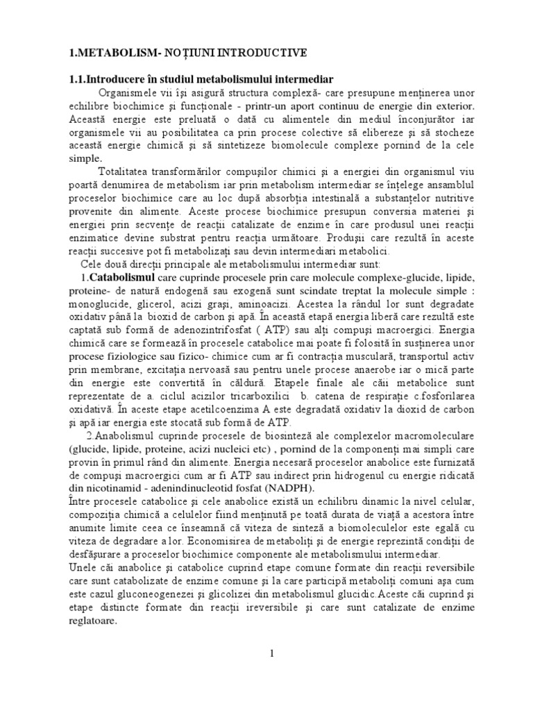 Metabolismul se clasifică în funcţie de natura biomoleculei sau compusului