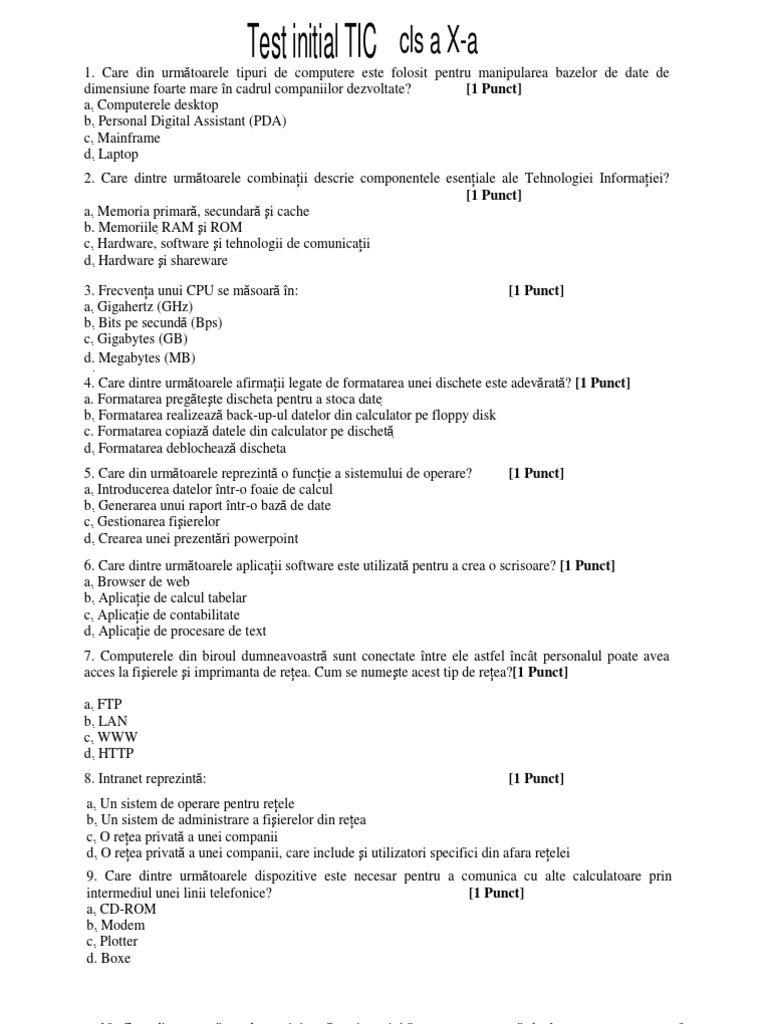 acces la fişierele şi imprimanta de reŃea. Cum se numeşte acest tip de reŃea?[1 Punct]