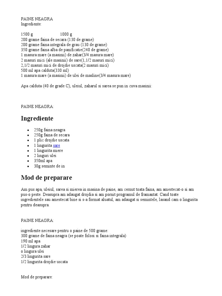 se adauga faina neagra (sau integrala), iar drojdia uscata trebuie adaugata ultima. Deoarece acum