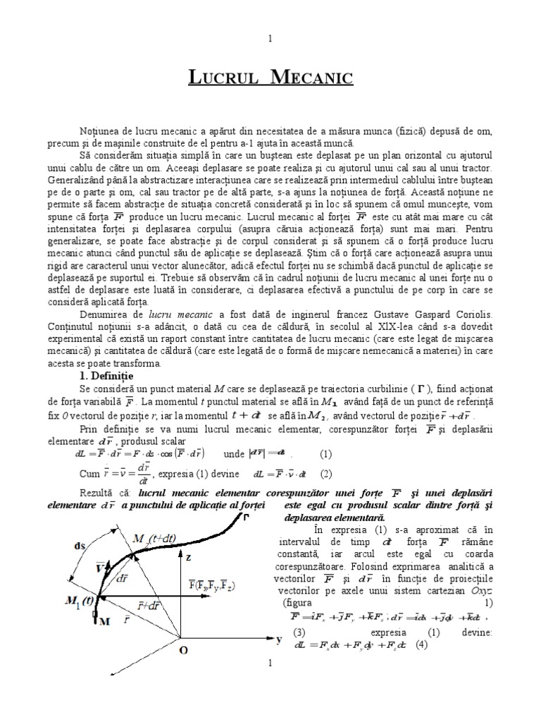 mecanic atunci când punctul său de aplicaţie se deplasează. Ştim că o forţă care acţionează asupra unui