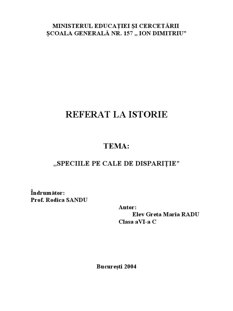 ,,SPECIILE PE CALE DE DISPARIŢIE”