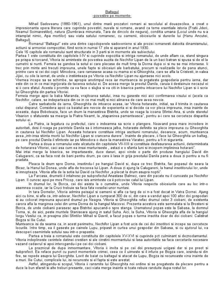 aparte in creatia sadoveniana il ocupa opera literara Baltagul.