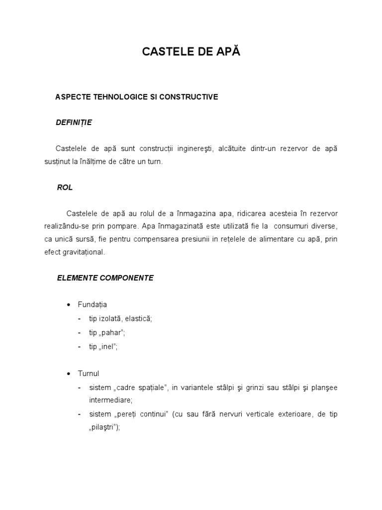 Castelele de apă sunt construcţii inginereşti, alcătuite dintr-un rezervor de apă