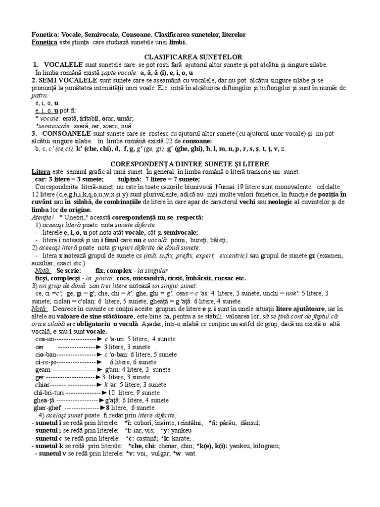 Fonetica: Vocale, Semivocale, Consoane.