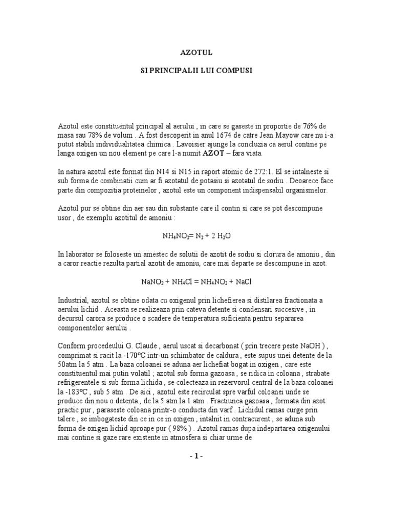 Azotul pur se obtine din aer sau din substante care il contin si care se pot descompune