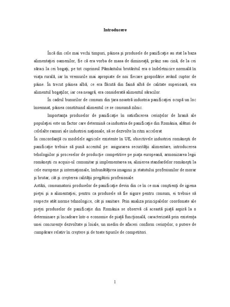 În cadrul bunurilor de consum din ţara noastră industria panificaţiei ocupă un loc
