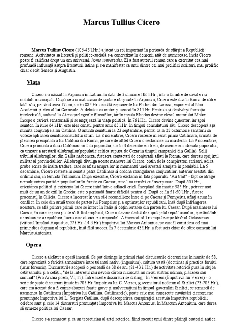 romane. Activitatea sa literară și politico-socială s-a concretizat în domenii atât de numeroase, încât Cicero