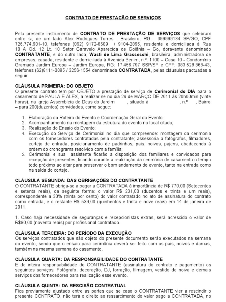 entre si, de um lado Alex Rodrigues Torres , Brasileiro, RG. 399999134 SP/GO, CPF