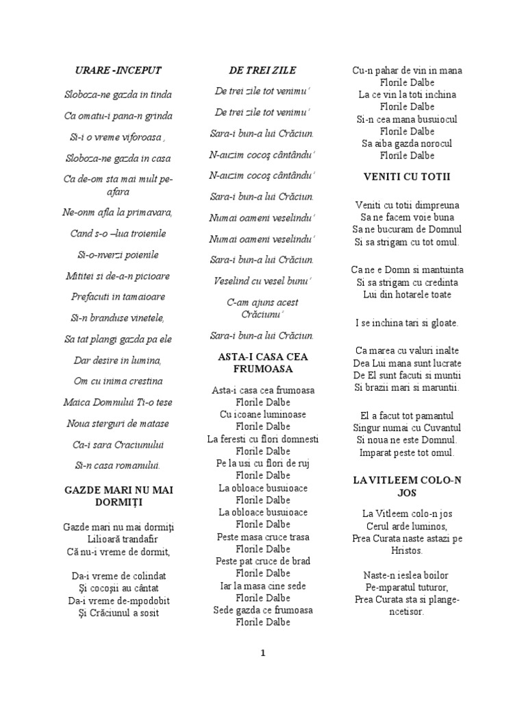 Slava sa aiba nesfarsita In albi desagi ducand... Colindam, colindam iarna