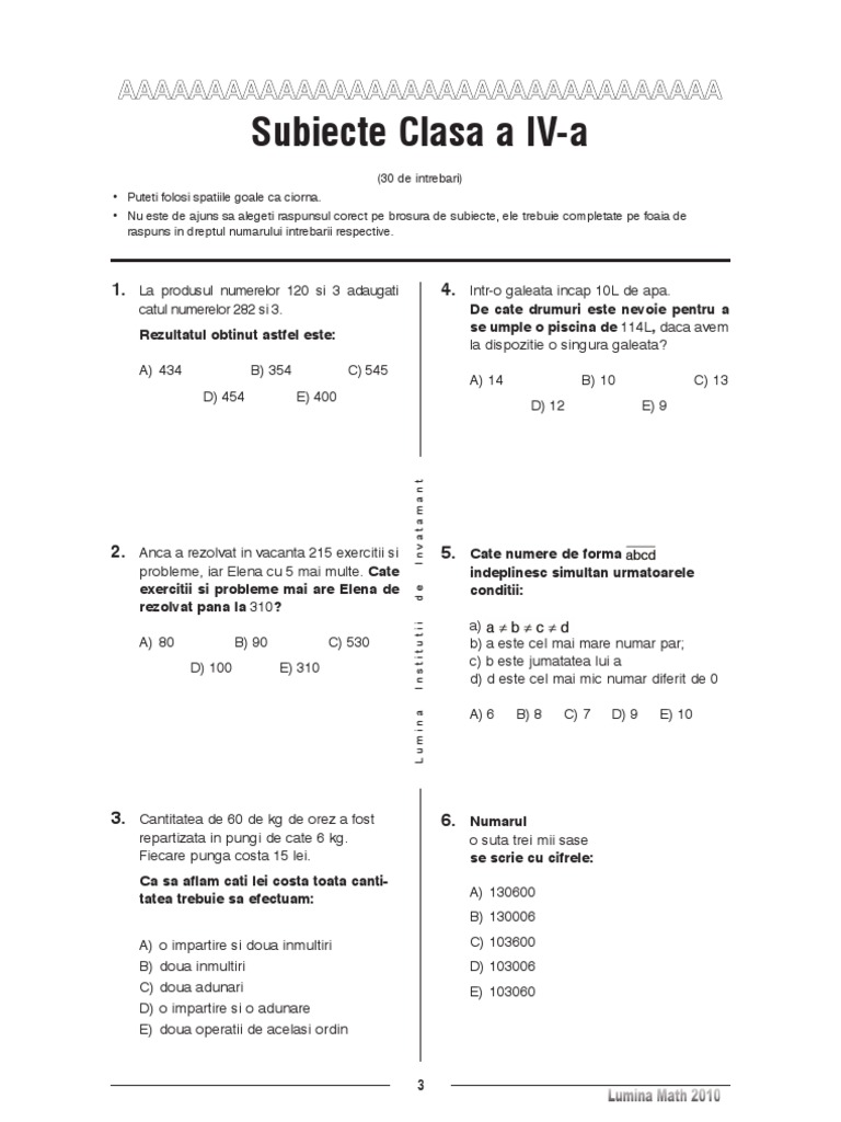 • Nu este de ajuns sa alegeti raspunsul corect pe brosura de subiecte, ele trebuie completate pe foaia de