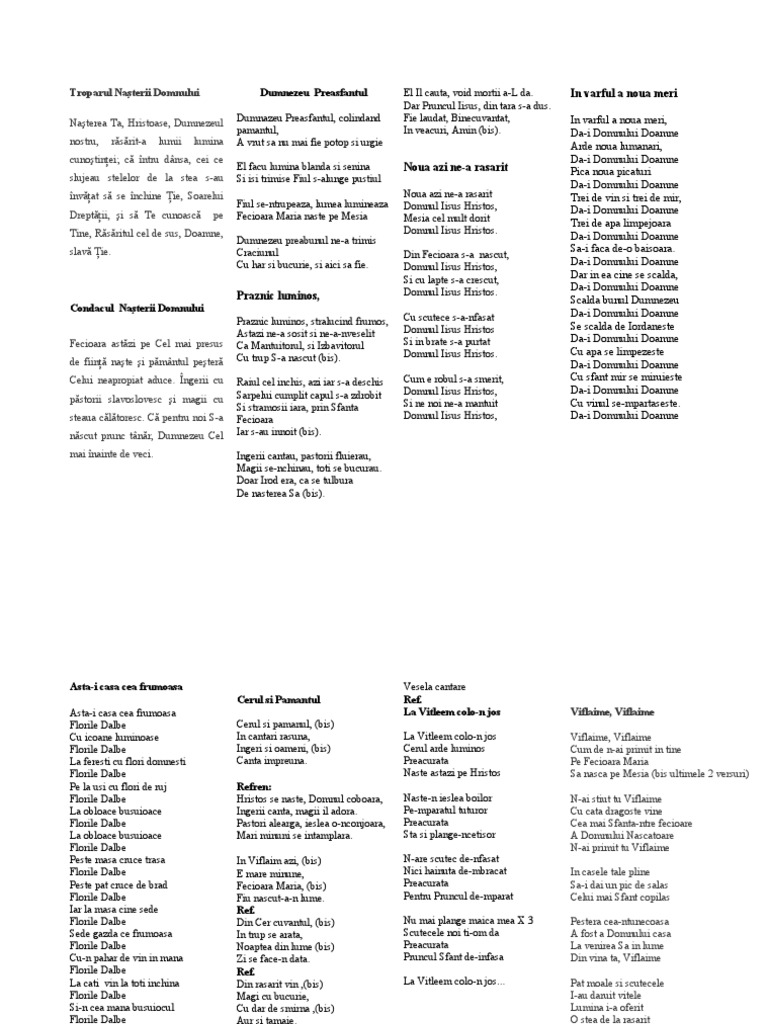 La obloace busuioace Ingerii canta, magii il adora. Pe-mparatul tuturor Cu cata dragoste vine