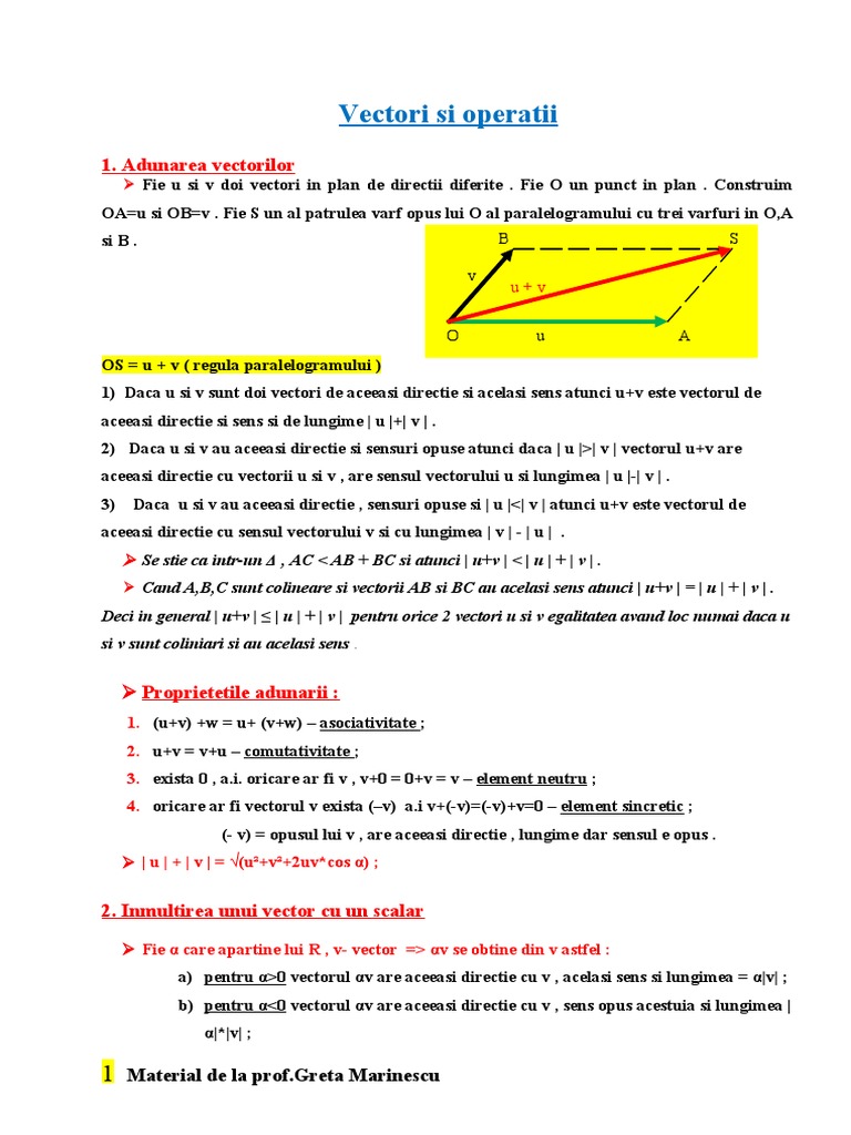 1) Daca u si v sunt doi vectori de aceeasi directie si acelasi sens atunci u+v este vectorul de
