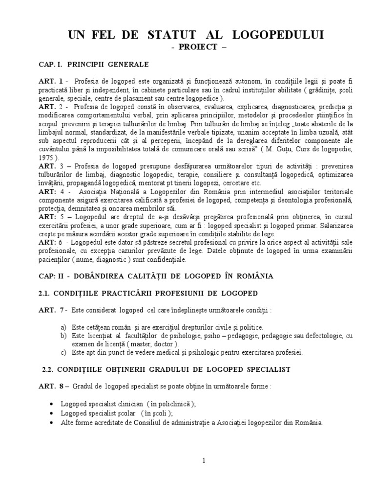 ART. 1 - Profesia de logoped este organizată şi funcţionează autonom, în condiţiile legii şi poate fi