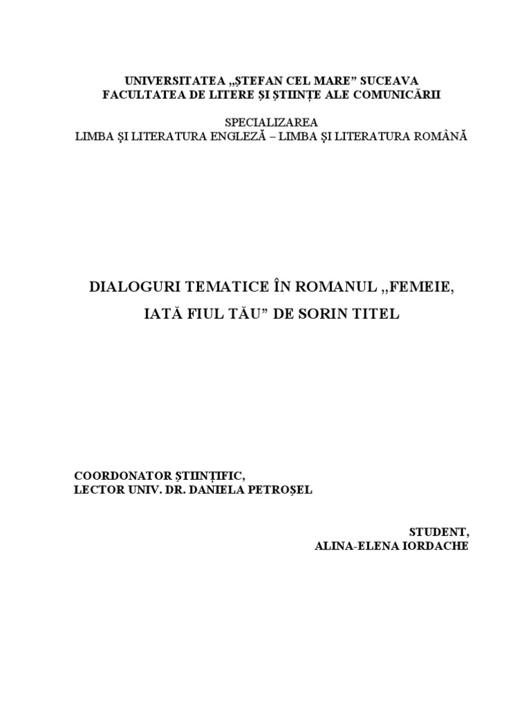 Sorin Titel?, de ce romanul Femeie, iată fiul tău? (deoarece trebuie spus faptul că din păcate