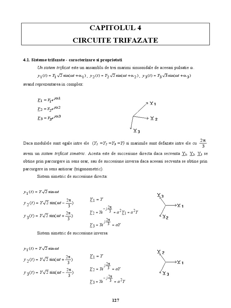 Daca modulele sunt egale intre ele (Y1 =Y2 =Y3 =Y) si marimile sunt defazate intre ele cu