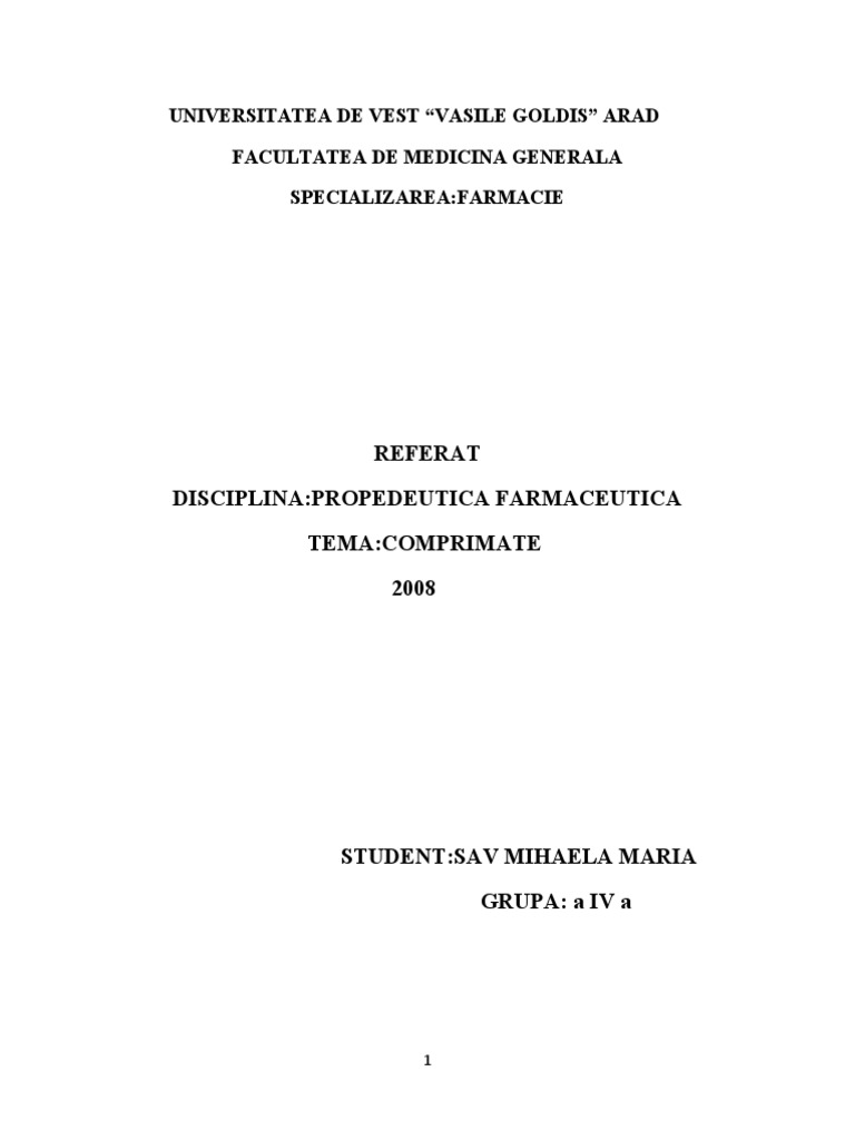 Comprimantele reprezinta cea mai importanta forma farmaceutica dozata,cu