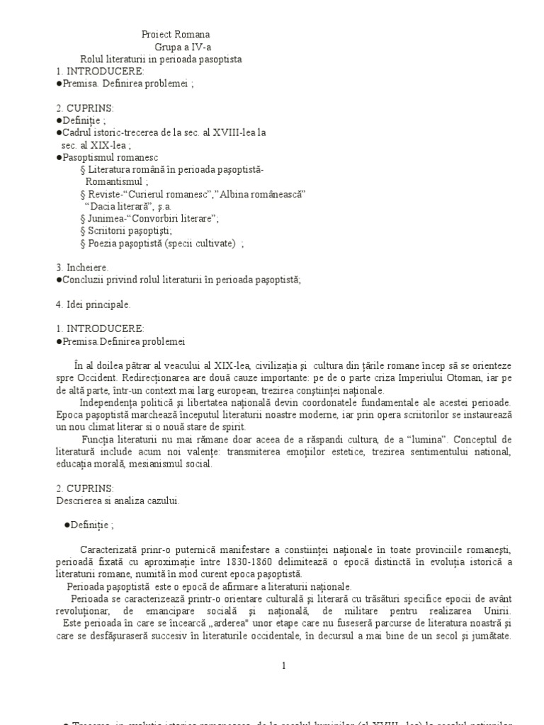 Rolul literaturii in perioada pasoptista