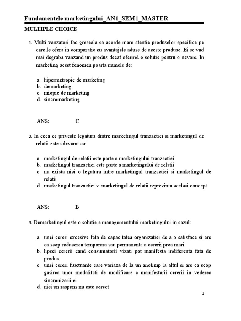 a. testul de marketing