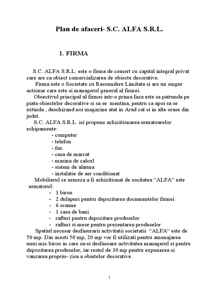 Plan de afaceri- S.C. ALFA S.R.L.