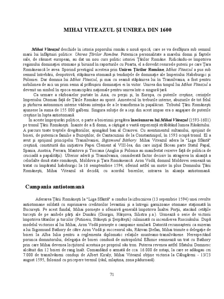 Românească le avea. Sporind prestigiul acesteia prin Unirea Ţărilor Române, Mihai Viteazul a pus sub