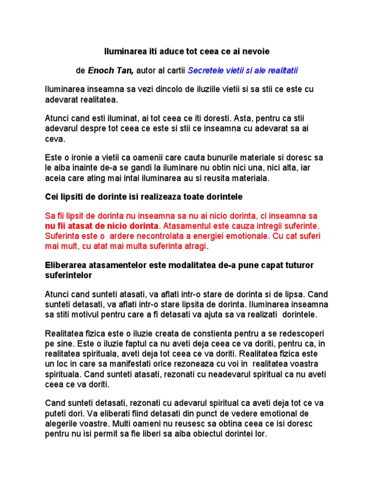 realitatea spirituala, aveti deja tot ceea ce va doriti. Realitatea fizica este