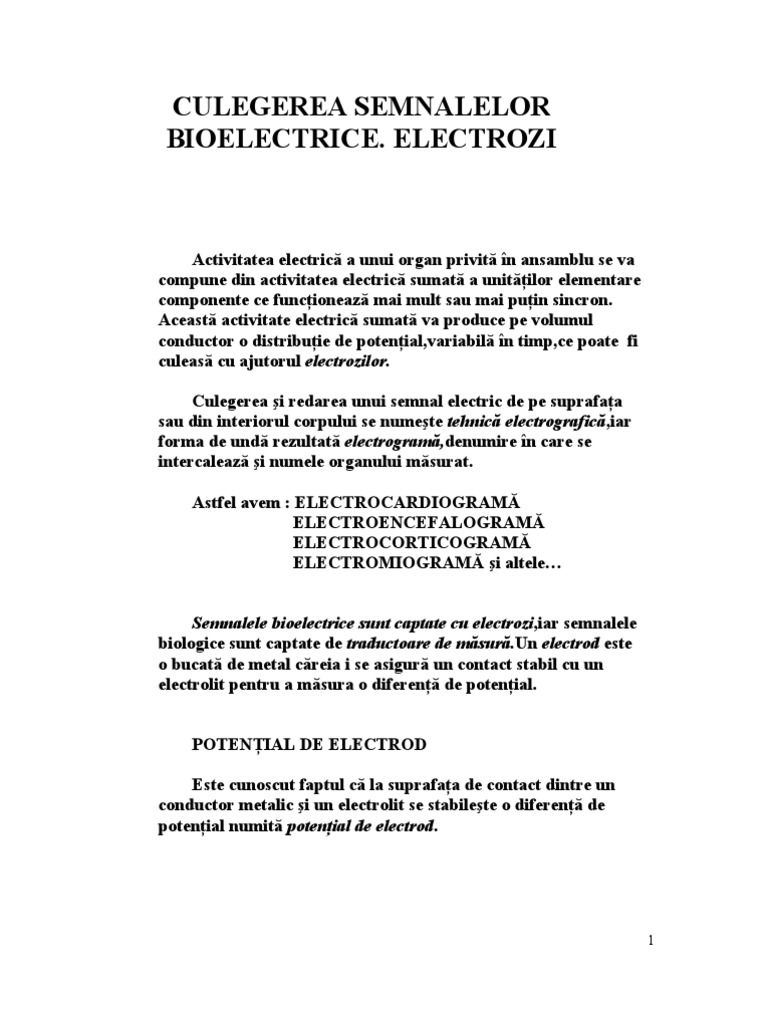 biologice sunt captate de traductoare de măsură.Un electrod este