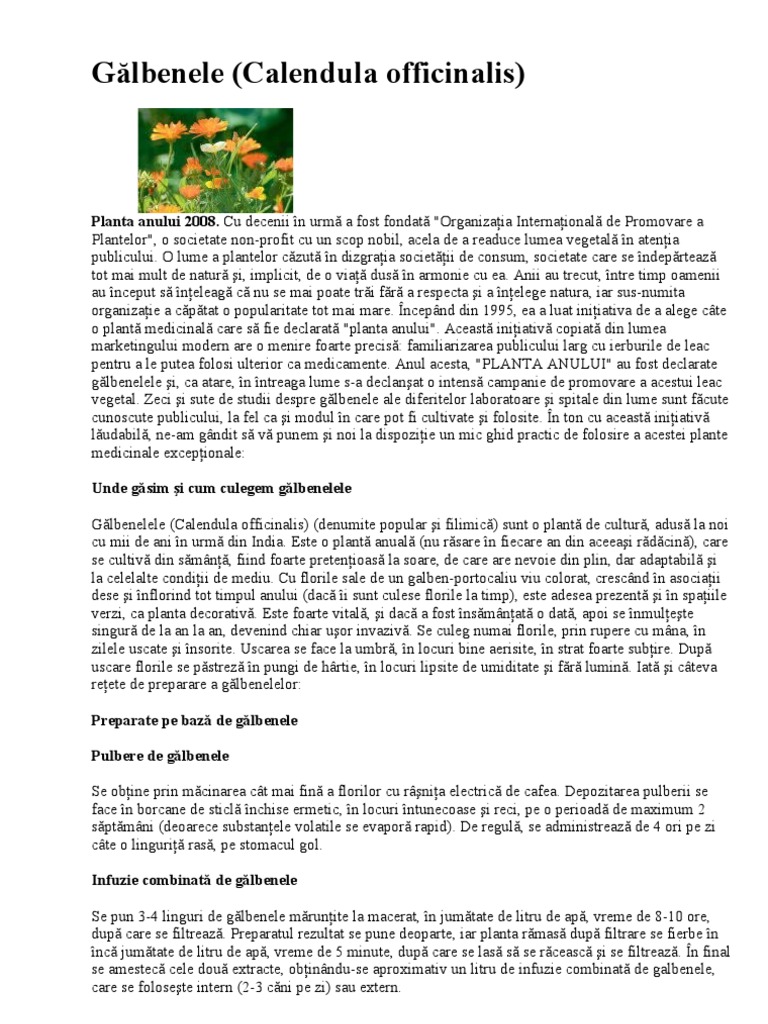 a scăzut foarte puţin, ceea ce a condus la concluzia că gălbenelele acţionează în aceste afecţiuni prin