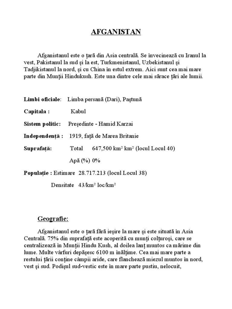 Afganistanul este o ţară din Asia centrală. Se învecinează cu Iranul la