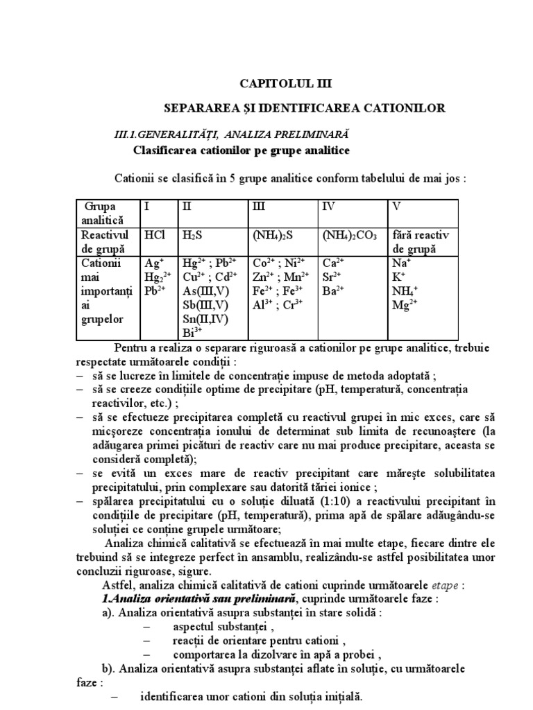 SEPARAREA ŞI IDENTIFICAREA CATIONILOR