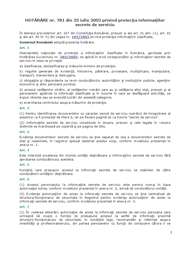 şi ale art. 42 lit. h) din Legea nr. 182/2002 privind protecţia informaţiilor clasificate,