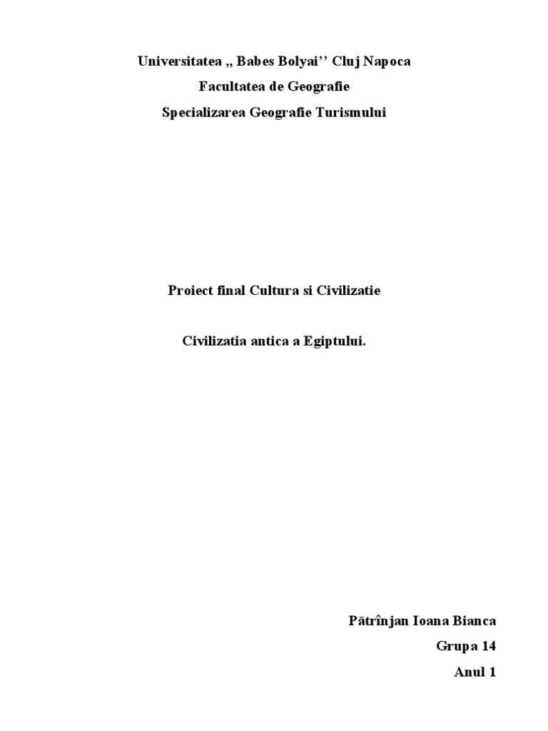 erei noastre o veche civilizaţie a lumii mediteraneene, aceea a Egiptului Antic. Ea ne înfăţişează cel