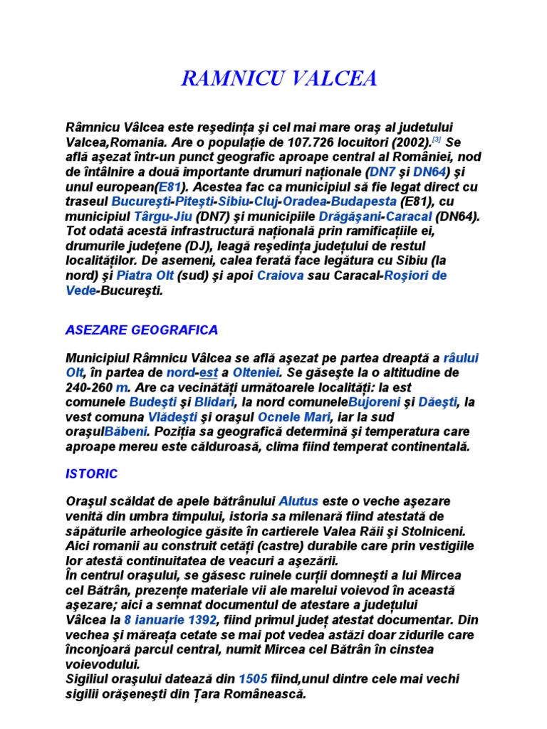 Valcea,Romania. Are o populaţie de 107.726 locuitori (2002).[3] Se