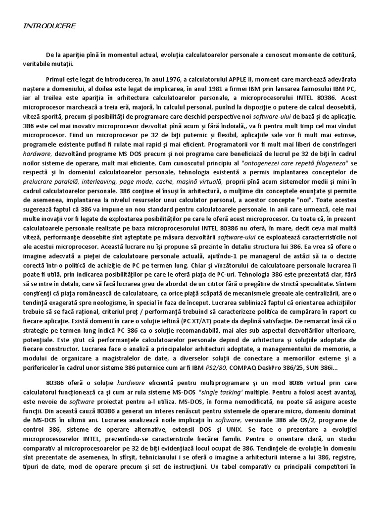 ale acestui microprocesor. Această lucrare nu îşi propune să prezinte în detaliu structura lui 386. Ea vrea să ofere o