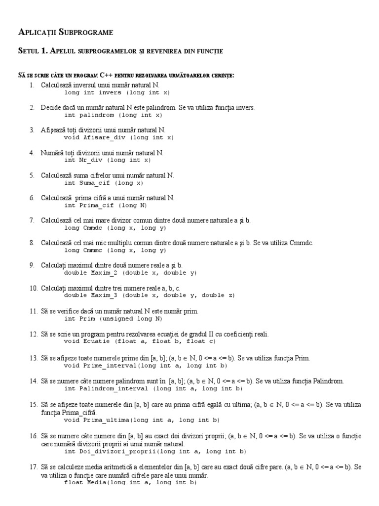SĂ SE SCRIE CÂTE UN PROGRAM C++ PENTRU REZOLVAREA URMĂTOARELOR CERINŢE: